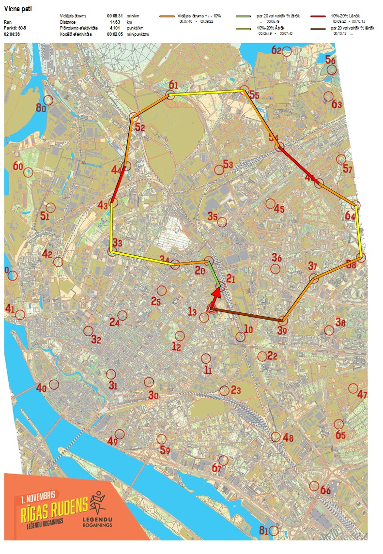 | Order No. | CP No. | Time | Points | Total points | Stage time | Total time | Stage distance | Total distance | min/km | min/pts | Split place |