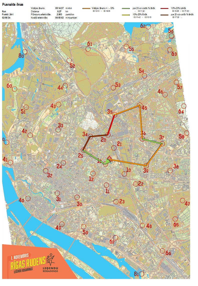 | Order No. | CP No. | Time | Points | Total points | Stage time | Total time | Stage distance | Total distance | min/km | min/pts | Split place |