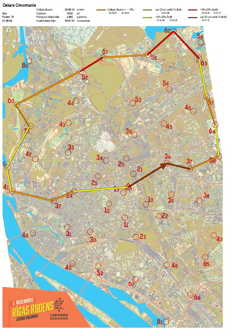 | Order No. | CP No. | Time | Points | Total points | Stage time | Total time | Stage distance | Total distance | min/km | min/pts | Split place |