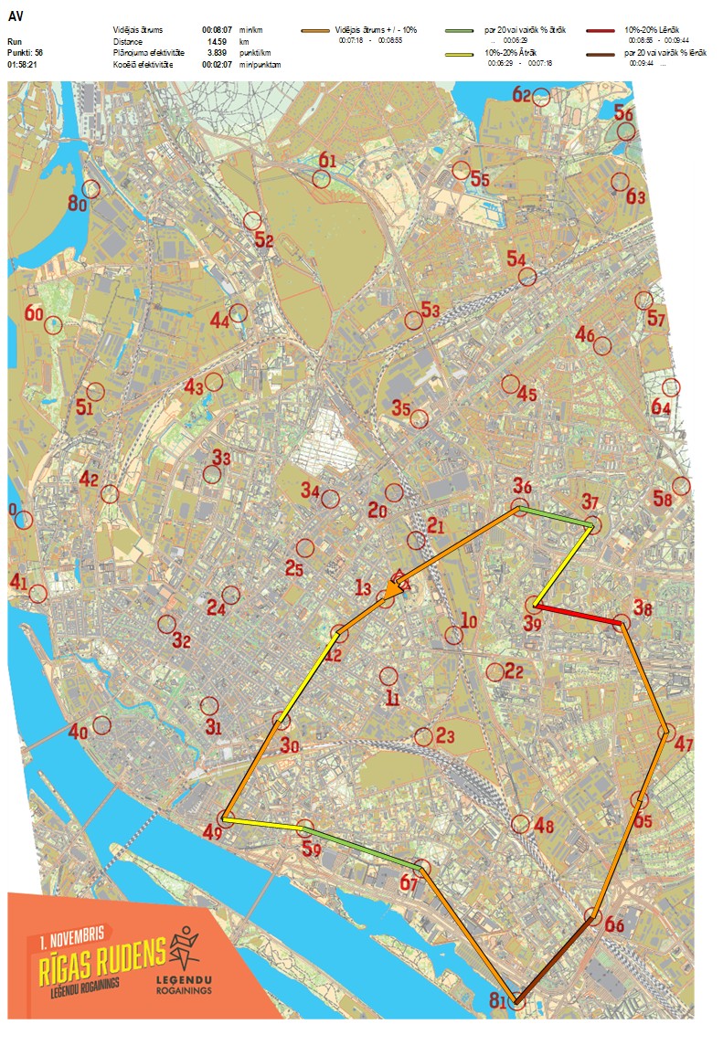 | Order No. | CP No. | Time | Points | Total points | Stage time | Total time | Stage distance | Total distance | min/km | min/pts | Split place |