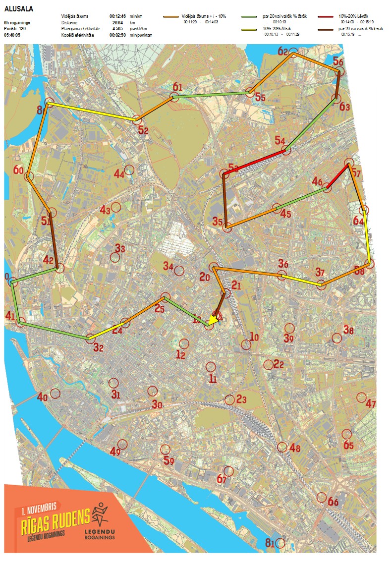 | Order No. | CP No. | Time | Points | Total points | Stage time | Total time | Stage distance | Total distance | min/km | min/pts | Split place |