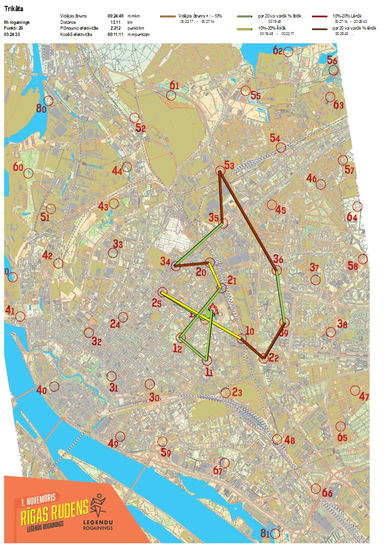 | Order No. | CP No. | Time | Points | Total points | Stage time | Total time | Stage distance | Total distance | min/km | min/pts | Split place |