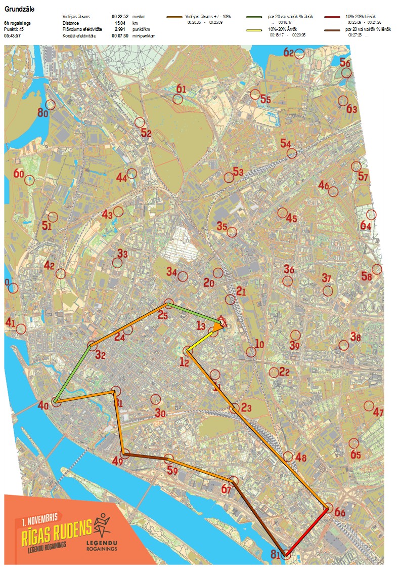 | Order No. | CP No. | Time | Points | Total points | Stage time | Total time | Stage distance | Total distance | min/km | min/pts | Split place |