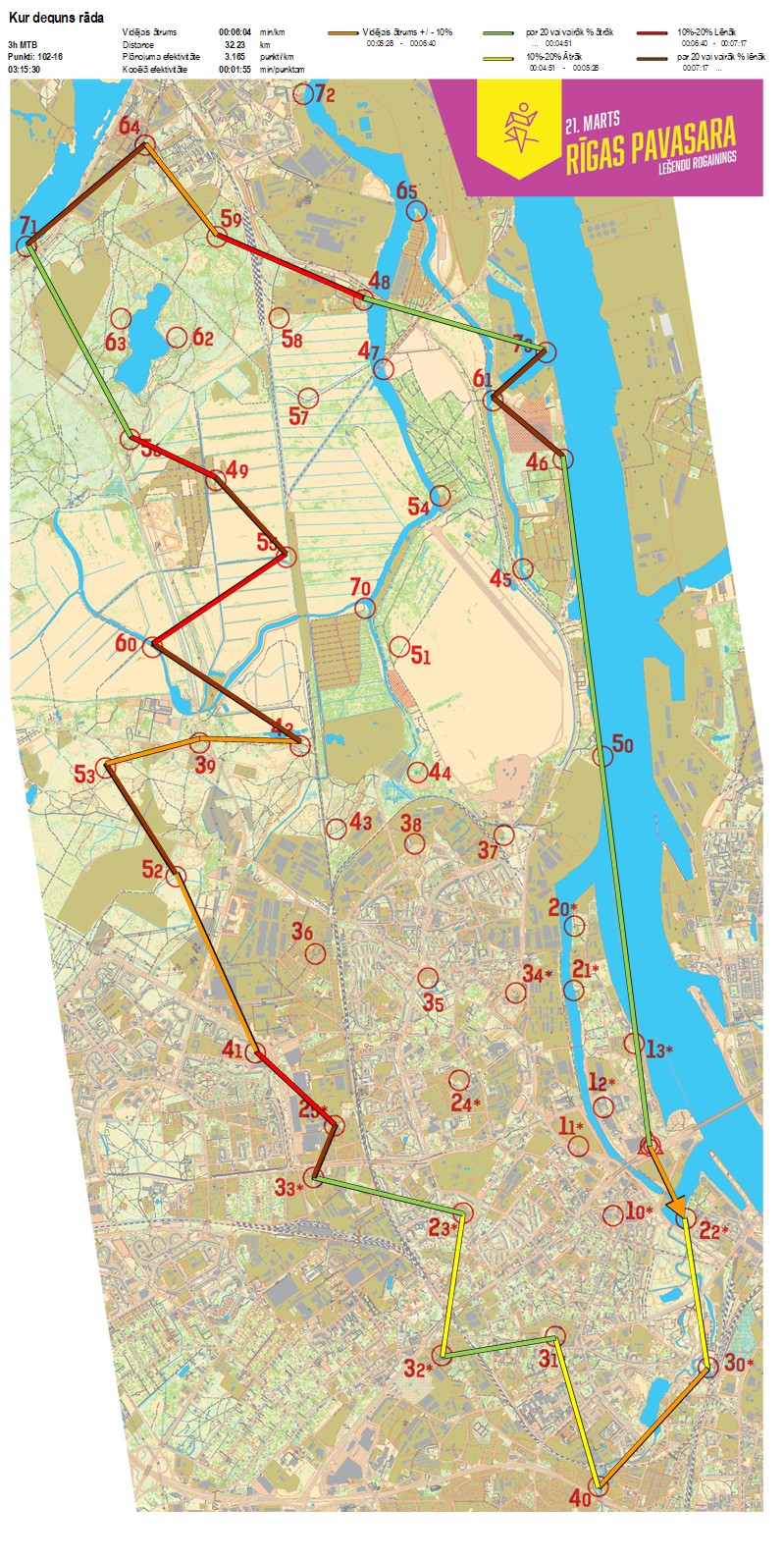 | Order No. | CP No. | Time | Points | Total points | Stage time | Total time | Stage distance | Total distance | min/km | min/pts | Split place |