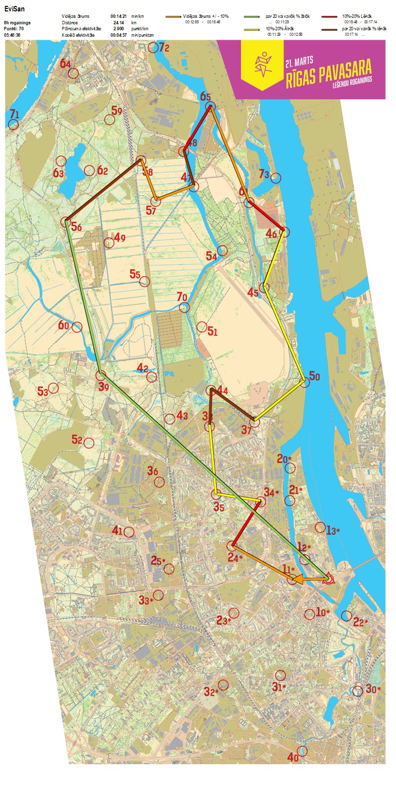 | Order No. | CP No. | Time | Points | Total points | Stage time | Total time | Stage distance | Total distance | min/km | min/pts | Split place |