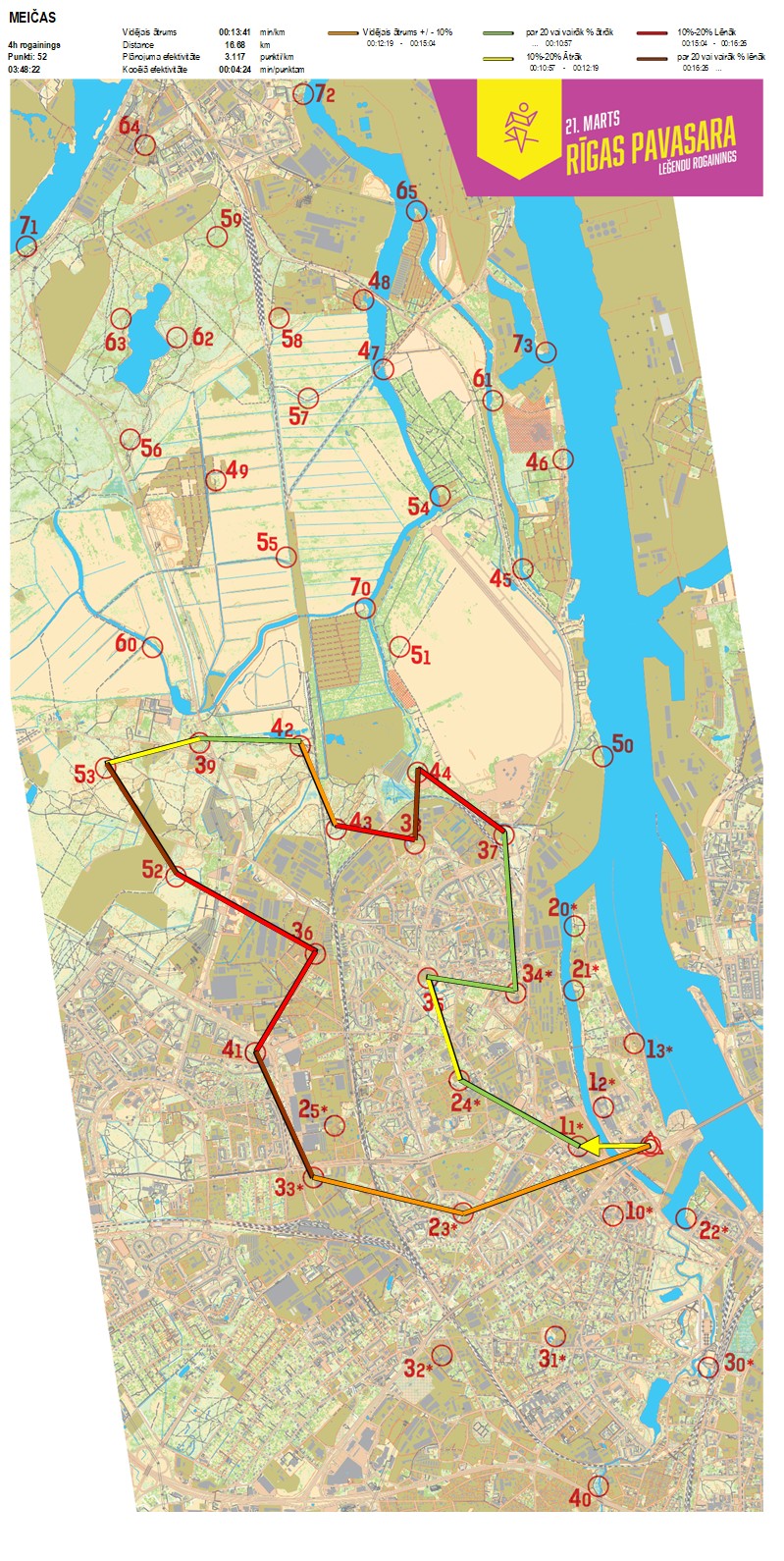 | Order No. | CP No. | Time | Points | Total points | Stage time | Total time | Stage distance | Total distance | min/km | min/pts | Split place |