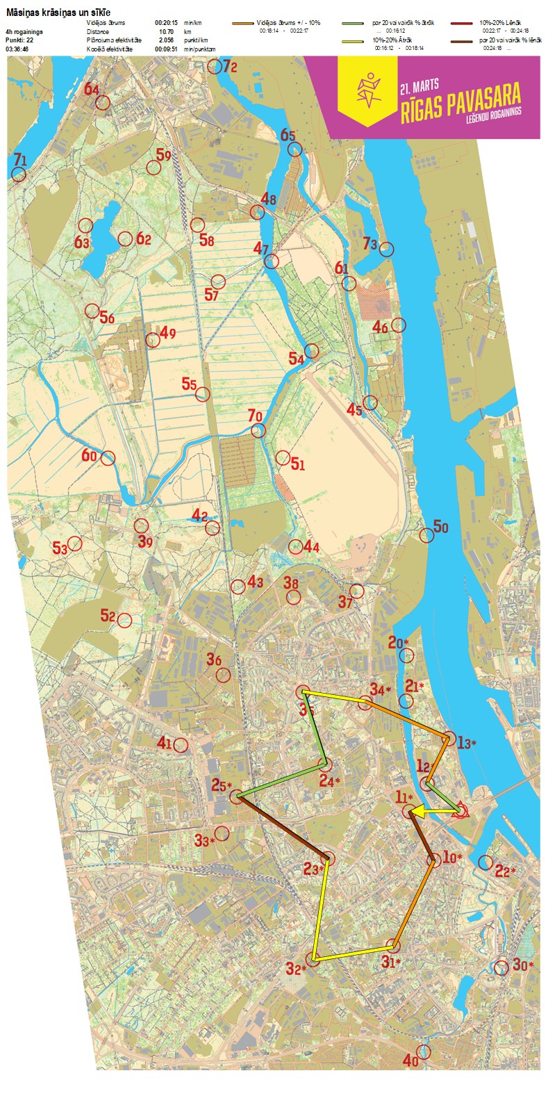 | Order No. | CP No. | Time | Points | Total points | Stage time | Total time | Stage distance | Total distance | min/km | min/pts | Split place |