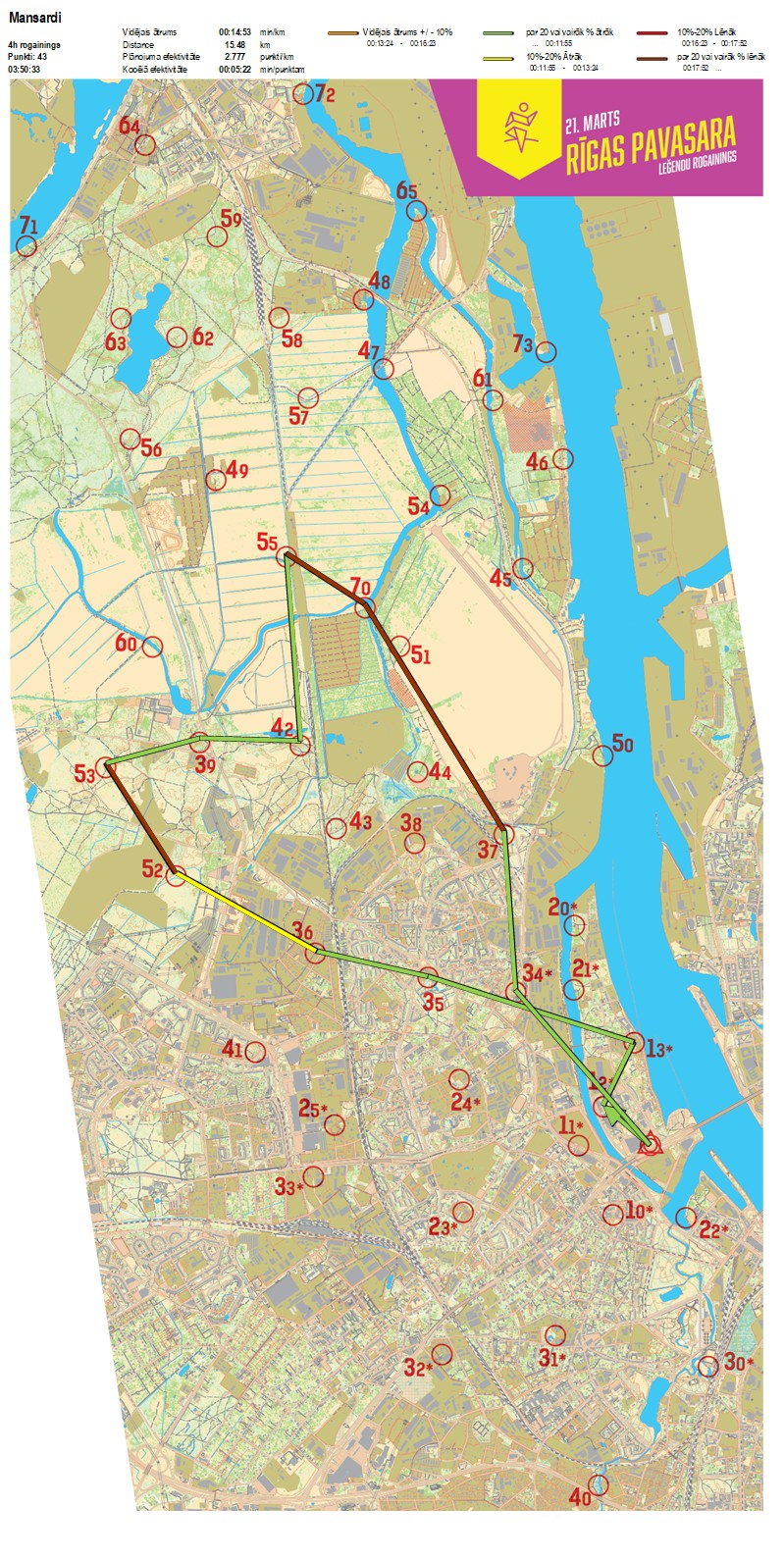 | Order No. | CP No. | Time | Points | Total points | Stage time | Total time | Stage distance | Total distance | min/km | min/pts | Split place |
